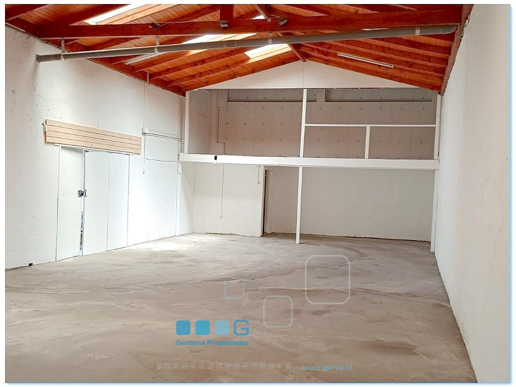 Amplio galpón. Gran zona de almacenamiento de 116 m2. aprox. Techo alto. 1 baño. 1 estacionamiento.