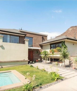 imados y proporcionados por los dueños****300/900 ms App. Espectacular casa amoblada en niveles vista despejada en sector exclusivo y residencial San Carlos Apoquindo a pasos de Colegios Padre Hurtado, Juanita de los Andes a 10 minutos de metro Los Dominicos. 5 dormitorios 7 baños 2 salas de estar. En subsuelo un dormitorio en suite o sala de estar, Primer nivel: Amplio hall de entrada living comedor separados en niveles con salida a cómoda terraza techada, baño de visitas gran dormitorio principal en suite con walk in closet, salita y terraza. cocina equipada comedor de diario, loggia., Segundo nivel, 3 dormitorios 2 baños y salita.Jardín diseñado por paisajista, piscina. ventanas termopanel, calefacción por radiadores, cerco eléctrico, seguridad 24/7. Gran terraza techada quincho en obra, piscina, baño sector piscina. Portón eléctrico, estacionamientos descubiertos para 4 autos. **** No se aceptan Mascotas **** Disponibilidad entrega 1 mes despues de confirmado el arriendo*** Los metros son aprox