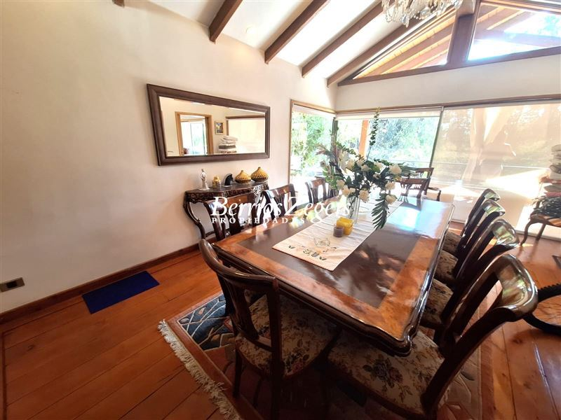 Se vende casa en Quinchamalí, comuna de Las Condes, en la tranquila zona . Esta propiedad cuenta con 4 dormitorios y 5 baños distribuidos en 356 m2 construidos, en un terreno de 1050 m2. Con un total de 396 m2 con gran terraza y una hermosa vista hacia el jardín , esta casa tipo chalet colonial ofrece amplitud y comodidad luminosidad para toda la familia.Descripción: PRIMER PISO-Amplio hall de entrada con piso de mármol-Baño de visita-Living comedor con salida a la gran terraza con vista al jardín-Cocina comedor diario con isla -Logia- Habitación de servicio -Habitación Principal en suite con doble walking closet -Sala de estar o escritorio - Dos dormitorios mas baño completoSEGUNDO PISO:-Dormitorio -Baño -Walking Closet - Gran sala de estar -Piscina jardín parquizado y formado con grandes arboles Esta propiedad es ideal para quienes buscan una vivienda espaciosa y confortable en una de las zonas más exclusivas de Las Condes. No pierdas la oportunidad de visitar esta casa única y descubrir todo lo que tiene para ofrecer. Contáctanos para más información y agendar una visita.
