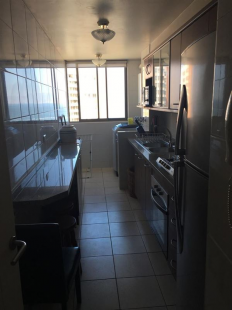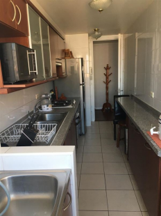 98 m2 aprox. Estupendo departamento amoblado, 3 dormitorios, 2 baños, cocina amoblada y equipada, lavandería. Suite con salida a terraza. 1 estacionamiento techado, bodega.GASTOS COMUNES INCLUIDOS