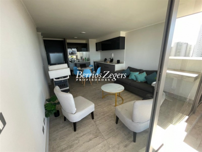 Hermoso departamento ubicado en un piso 8, espacios abiertos, tres dormitorios, dos baños, se arrienda con muebles y sin muebles, prácticamente nuevo, muy bien mantenido, hermosa terraza con barbecue y espectacular vista al mar y hacia Concón .