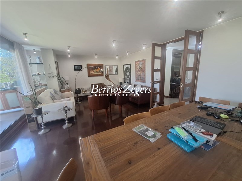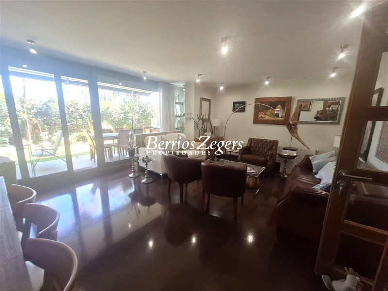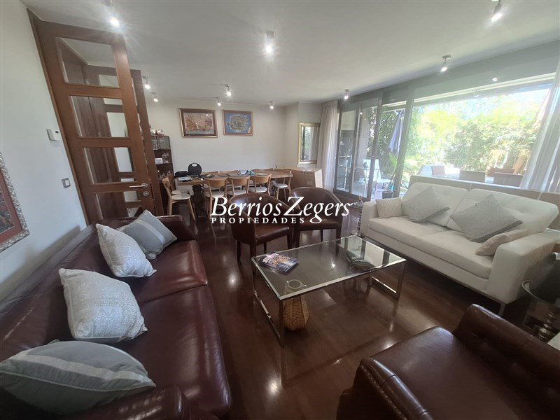 Departamento Duplex con jardin en San Carlos de Apoquindo, con seguridad las 24 hrs, en condominio, con piscina y quincho, moderno, bien ubicado con respecto al sector, cercano a Universidades, colegios y supermercado, y acceso rapido a la Autopista.Nivel 1: hall de entrada, recibos amplios con vista al jardin privado con salida a terraza techada con quincho, cocina amoblada y equipada con comedor de diario, lavadero y servicios.1 nivel inferior: 2 salas de estar, una muy amplia usada como gym y otra mas pequeña, dormitorio en suite, 2 bodegas interiores.Condominio con piscina temperada, club house, areas verdes y zonas para caminar, bicicletero, estacionamientos de visitas.Caracteristicas Generales: 300 mtrs , 240 mtrs util, 60 mtrs terraza, calefaccion por radiador, ventanas termopanel PVC, pisos de porcelanato y flotante, 2 estacionamientos, 2 bodegas,GComunes incluyen calefaccion,agua caliente y mantencion de su jardin ($500.000 aprox).AGENDA TU VISITA