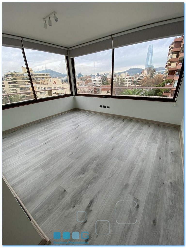 Hermoso. Amplios recibos, piso flotante, con salida a pequeño balcón. Cocina americana, logia. 2 dormitorios, principal suite con aire acondicionado. 2 baños, ambos con ventana. Estacionamiento. Bodega. Cercano metro Colón y Tobalaba.