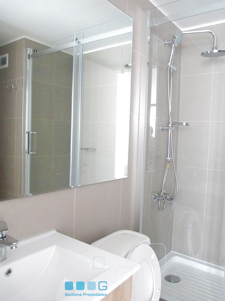 Precioso. Recibos con cocina americana equipada con encimera, horno, campana, salida a terraza. 1 dormitorio en suite con salida a terraza. 1 baño moderno, espacio para lavadora. Estacionamiento. Bodega. Edificio Full. Con plafones y barras p/cortinas