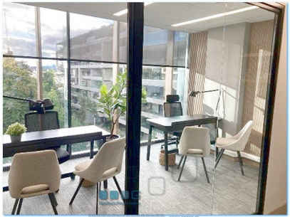 UF 47 más IVA. Full habilitada y amoblada. Recepción amplia, 2 privados. Sala de reunión. 1 baño. Kitchenette. Estacionamiento. Bodega . Alfombra, luminarias, chapa digital, papel mural, etc.). Edificio clase A. Estacionamiento, bodega