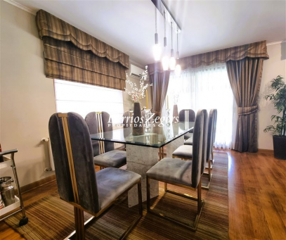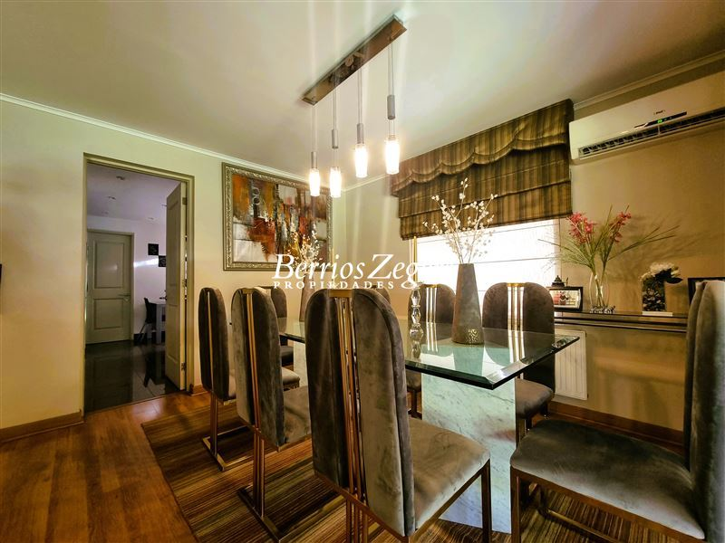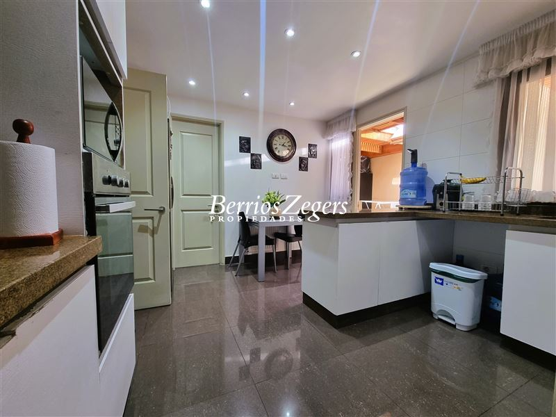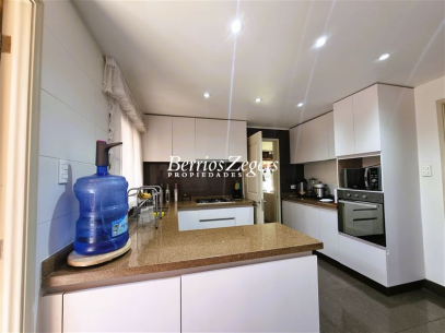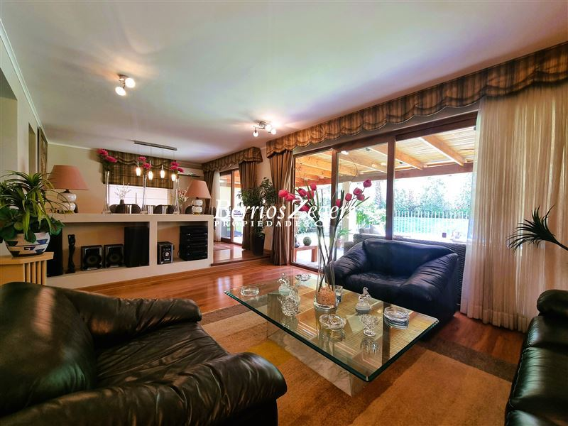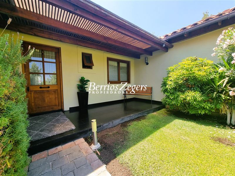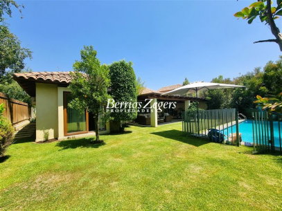 170/560 mts. aprox. Linda y cómoda casa chilena, de un piso, en condominio con máxima seguridad 24/7, consta de hall de entrada, living comedor separados con salida a gran terraza techada, Impecable cocina con mesones de granito, comedor de diario, con salida a logia techada, baño de visitas y servicios completos, dormitorio principal en suite con salida al jardín, baño con luz natural y 2 walk in closet separados, mas dos dormitorios que comparten un baño, gran sala de estar, lindos jardines formados, con riego automático, gran piscina con paneles solares, estacionamiento para dos autos techados, y estacionamientos descubiertos para 3 autos más. La propiedad cuenta con ventanas termopanel, calefacción central por radiadores, y aires acondicionados.Condominio cuenta además con entrada controlada, estacionamientos de visita, plazas, areas verdes con juegos infantiles, cancha de futbol, cámaras de circuito cerrado por todo el condominio