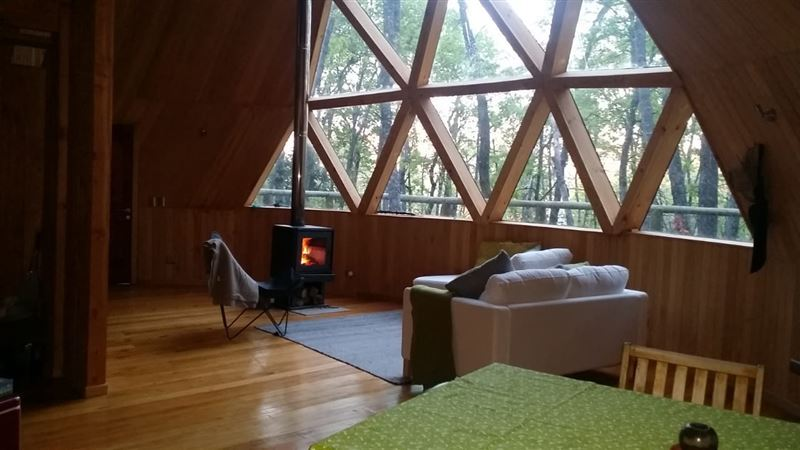 Parque El Buchén es un proyecto eco-inmobiliario constituído por fundos cuyas superficies fluctúan entre 5 y 9 hectáreas lo que abarca un total de 500 hectáreas, más un parque común de 1.000 hectáreas, es decir 1.500 hectáreas que lo convierten en un escenario ideal para descansar y desarrollar actividades en familia como trekking, cabalgatas, paseos en bicicleta, excursiones y pesca deportiva.EL ESPÍRITU DE LA MONTAÑA:El paso desde la ciudad a la montaña nos conduce a una profunda transformación espiritual. Respirar, sentir, entender, conocer y compartir, son algunas de las muchas experiencias para los sentidos, en unión con la tierra y la inmensidad de la naturaleza en su estado más puro e intocable.SE VENDE : 85/ 55.657 m2 aprox, Maravilloso Domo inserto en la naturaleza, con hot tub, y quincho, 3 dormitorios ppal en suite en el 1er. piso mas otro baño completo, y en el 2do piso; dos amplios dormitorios mas sala de estar ó 4to. dormitorio, eléctricidad con paneles solares c/baterias y además hay generadores el agua, la entrega el condominio a cada propietario (10,000 lts) que están en dos entanques de 5.000 lts. cada uno, lo que funciona perfecto, por efecto gravedad, ya que los estanques estan mas altos que el domo, agua caliente con calefont . terreno de 5 hectareas