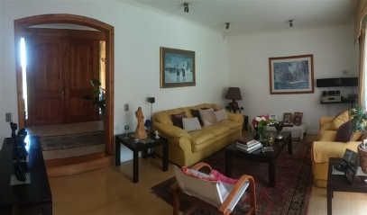 Acogedora Casa Estilo colonial en condominio Condominio los nogales de La Reina Primer piso: Hall de entrada Baño visitas 2 dormitorios Gran comedor con vista al jardín amplio living con salida a terraza techada Amplia cocina con mesón de trabajo central Loggia Servicios completos Segundo piso; 2 dormitorios en suite con terraza 1 sala de estar Gran Jardín con piscina y terraza techada 3 estacionamientos Portón automático