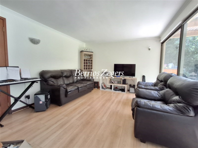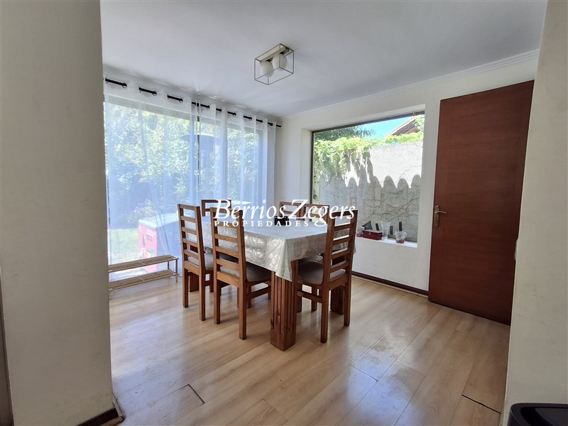 Excelente casa EN CONDOMINIO de 2 pisos, consta en 1er. piso; de amplio living comedor separados, con salida a terraza techada, vista oriente y al jardín, dormitorio principal es en suite con W-Closet, mas escritorio o pieza de bebe, baño de visita, amplia cocina con comedor de diario, loggia, pieza y baño de servicio. En el2 do. piso 2 dormitorios, un baño completo y salita de estar, calefacción por losa, estacionamiento para 2 autos, conserjería 24/7, a pasos de supermercados, colegios, locomocion colectiva. OPORTUNIDAD!!