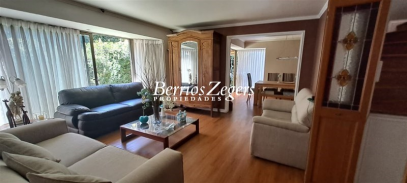 275metros/314 metros aproximados OPORTUNIDAD CASA EN CONDOMINIO, máxima seguridad, sólo 5 casas, amplio hall de entrada, living- comedor separados con salida a terreza, gran sala de estar/bar cocina equipada con comedor de diario y logia, baño de visitas, servicios completos. Segundo piso: 5 dormitorios, principal en suite y w-closet, piso de cerámica, 3 baños, ventanales con termopanel, calefacción por radiadores, sala home-oficce. Terraza techada, piscina, jardín,bodega. Cercana a centros comerciales y colegios. Excelente ubicación.