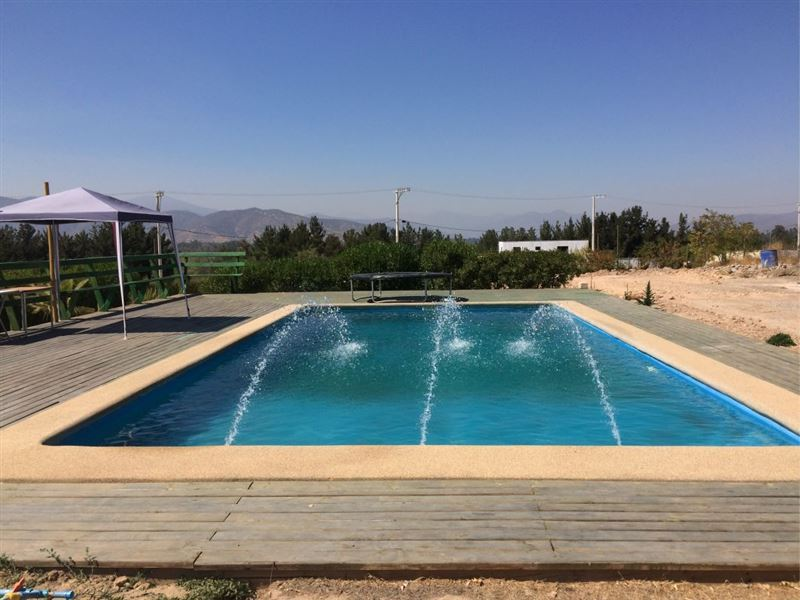 240 /5.070 m2 aprox. Hermosa y funcional casa en terminaciones finales. Posibilidad de venta de la casa terminada en 260 millones de pesos.Cuenta con : living y comedor, 5 dormitorios en suite, 6 baños en total. cocina americana.En espacio separado tiene lavandería, bodega, sala de agua, .Quincho, juegos infantiles, piscina con deck de 100 m, bar en borde piscina, camarines, terrazas .Jardines y setos con riego automático. Gran variedad de frutales con riego por goteo.