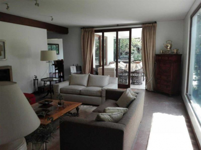 400/2879m2 aproximados. Hermosa casa estilo mediterráneo de 1 piso.Consta de 5 dormitorios y 4 baños mas servicios completos. Amplio hall de entrada con piedra Pelequen , baño de visitas, gran living-comedor separados con hermosa vista a patio y con salida a amplias terrazas, piscina y maravilloso paisaje con grandes arboles.Escritorio o segunda sala de estar (paredes cubiertas con madera) con salida a terraza.Cocina totalmente equipada con comedor de diario con salida a patio de servicio techado con bodega, amplia logia y dormitorio de servicio.Sector dormitorios, separados de áreas comunes, piso de madera. Sala de estar. Dormitorio principal en suite con w-closet. mas 2 dormitorios que comparten un baño, mas 2 dormitorios en suite. Ventanas termopanel, 2 calefont y caldera ( para conectar calefacción), riego automático, alarma, tiene un depto externo de un ambiente y baño.Cuenta con muchos estacionamientos.Excelente ubicacion.