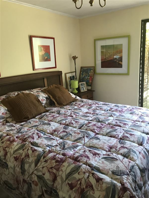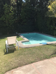 280/450 mts2. Espectacular casa en tranquilo barrio residencial de Las Condes. Hall de acceso, living bastante espacioso con chimenea, separado del comedor. Ambos con piso de madera y salida a agradable terraza y amplio jardín formado y piscina. Cocina tradicional de gran tamaño, más servicios completos. 2 dormitorios en suite, uno de ellos con Yacussi, más otros 2 dormitorios grandes y 3 baños. Toda la casa con calefacción central. Lindo y seguro barrio residencial, cercano a colegios, jardines infantiles, farmacias. A pasos de Avenida Cristóbal Colon y Manquehue Sur. Estacionamiento para 3 autos.