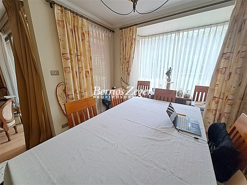 Casa estilo colonial de 2 pisos en San Carlos de Apoquindo, OPORTUNIDAD.5 dormitorios, 3 baños, sala de estar, servicios completos, cocina, lavadero, buen terreno (476 mtrs app). Excelente conectividad y ubicada en sector residencial, cercana al colegio Juanita de Los Andes, Universidades, Clinicas y comercio del sector.1er piso: hall de entrada, recibos separados (living con salida a terraza techada), cocina amoblada, servicios y lavadero techado y cerrado. Domitoerios principal en suitte con vista al jardin, dormitorio 2 o escritorio o pieza de niño, baño.2do piso: sala de estar, 3 dormitorios, 1 baño.CARACTERISTICAS GENERALES: calefaccion central, ventanas termopanel PVC parcial, porton y riego automatico, pisos flotante y ceramica, jardin y ante jardin, 4 a 5 estacionamientos.