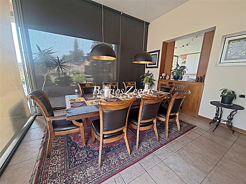 Casa mediteranea con espectacular vista panoramica a Santiago, sector exclusivo de Quinchamali, Las Condes. 4 dormitorios y 4 Baños, sala, escritorio.320/ 1400 mtrs app. Sus caracteristicas mas importante a destacar son luminosidad, finas terminaciones, vista 360°, espacios, altura,seguridad (caseta guardia afuera)Nivel superior : hall de acceso, baño de visitas, amplios recibos separados con salida a una gran terraza con vista insuperable, estar o escritorio, cocina amoblada y equipada con comedor de diario, lavadero, zona de planchado, patio de servicios y servicios.2do nivel inferior: 4 dormitorios con salida a terraza y vista, principal en suitte con doble w.closet, 1 baño, sala de estar con salida a terrazas.Exeriores: piscina, quincho equipado y techado con conexion a tv e internet, baño, jardin con riego automatico, porton y cerco electrico, canil, persianas electricas en dormitorios y toldos exteriores,alarma.Equipamiento: calefaccion por losa, pisos de madera, flotante y ceramica, estacionamientos para 6 autos(2 techados), bodega.AGENDA TU VISITA