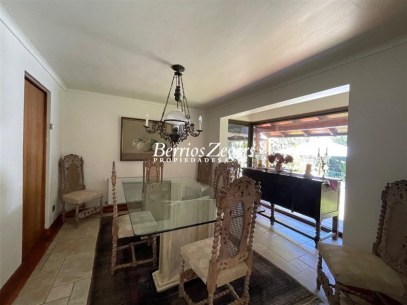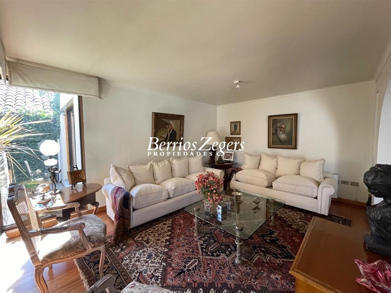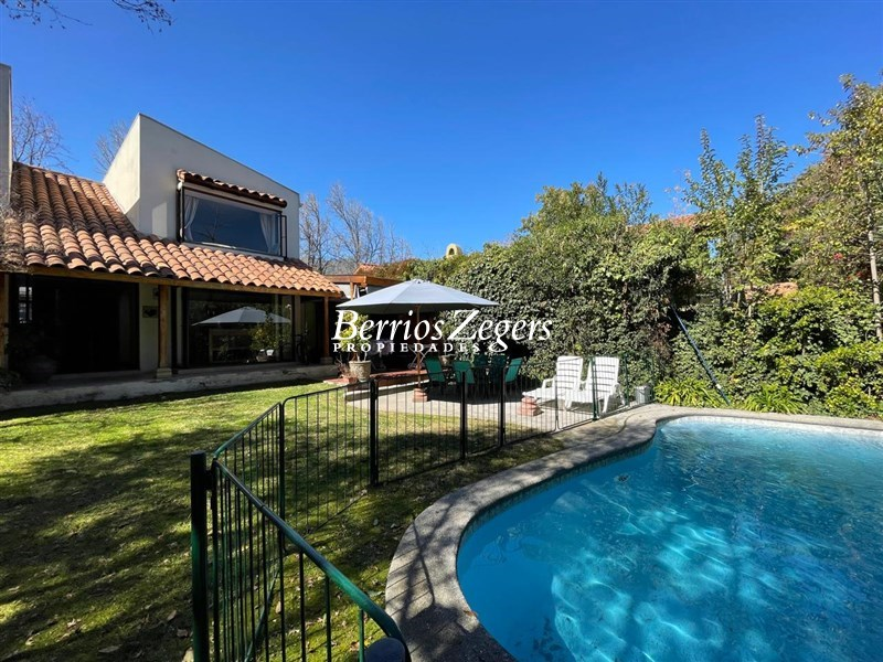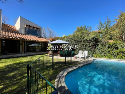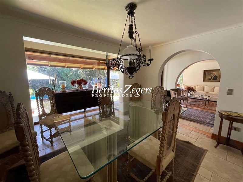 221/493 M2 Aproximados (entregado por dueños) Casa en excelente sector de San Carlos de Apoquindo; 5 dormitorios 3 baños mas servicios completos (baño y dormitorio), Hall; living comedor separados con salida a terrazas y jardín, con piscina con calefacción por panel solar. Cocina con salida a logia y comedor de diario. Dos dormitorios ( uno de ellos puede ser sala de estar y baño. Segundo piso Dormitorio principal en suite con w- closet, mas 2 dormitorios que comparten baño. Calefacción por radiadores, riego automático, estacionamiento para 2 autos. Sector residencial. cercana a colegios, universidades, cine, restaurantes, etc.