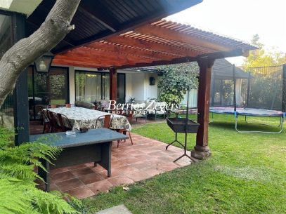 330/804 m2. Linda casa NOR-ORIENTE en condominio exclusivo de sólo 4 casas diferentes, cerca a próxima estación de metro Estoril, con muy buena conectividad y muy cercana a colegios, centros comerciales y clínicas.Hall de recepción con piso piedra pizarra y doble altura; Baño de visita moderno; Recibos separados; Gran cocina con cubierta de granito cuadrada, amplia, con muchos muebles, todo empotrado con comedor de diario; dependencias completas de servicio.Lindo jardín formado, con riego automático y juego para niños; piscina; bbq; 2 terrazas; logia techada.Estacionamiento interior para 4 autos con portón automático. Calefacción central; piso de madera primer piso y escalera; ventanales termopanel en toda la casa.1° piso: dormitorio principal en suite (baño con jacuzzi), más 2 dormitorios que comparten un baño; escritorio y sala de estar.2°piso: sala de estar; 3 dormitorios con un baño y amplio closet para ropa blanca y bodega; el segundo piso es flotante.(gasto común. $20.000 mensual)