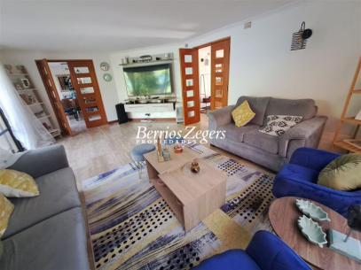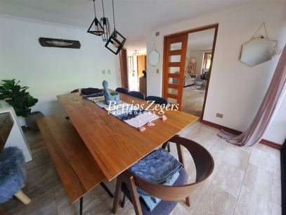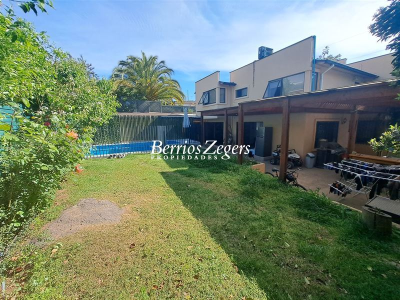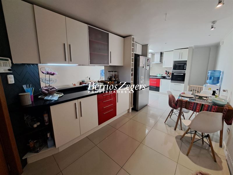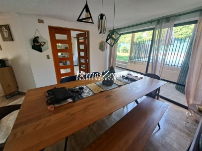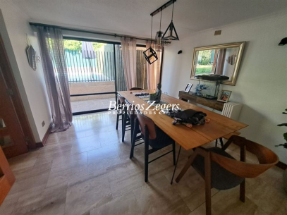 Casa estilo mediterraneo de 2 pisos, bien ubicada, buena conectividad, 5 dormitorios, 220/ 435 mtrs app. San Carlos de Apoquindo.Supermercados, Colegios, Supermercados cerca.1er piso: hall de entrada, recibos con salida a terraza y vista al jardin, cocina amplia amoblada y equipada con comedor de diario remodelada, lavadero y servicios,1 dormitorio y un baño. Entre piso: 1dormitorio amplio 2do piso: sala de estar, escritorio, 3 dormitorios, principal en suite con w.closet, 2 baños.CARACTERISTICAS GENERALES: calefaccion por radiador, riego y porton automatico, 2 entradas para autos, pisos porcelanto y flotante, piscina, quincho, 3 estacionamientos,.
