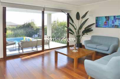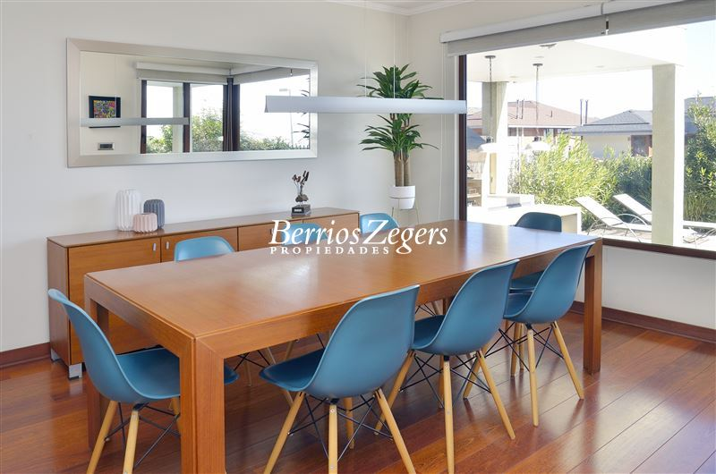 Casa Impecable estado en condominio, ubicada en San Carlos de Apoquindo. Cercana a colegios, clínicas, universidades, centros comerciales, supermercados y parques con juegos infantiles. Con buenos accesos y locomoción1º nivel:Living y comedor separados con salida a terrazaCocina con comedor de diario y logia techada, habitación de servicio con baño.Baño de visitasSubterráneo sala de estar con baño completo.2° Desnivel Dormitorio principal en suite con walk in closet y baño con jacuzzi con salida a patio interior3º nivel:Dos dormitorios, dos baños completos y sala de estudio con balcón con una hermosa vistaExteriorTerraza techada con bonito quincho.Jardín formado con riego automáticoPiscina con termo paneles solares Cancha de basquetbol Estacionamientos cubierto para tres autos EQUIPAMIENTOVentanas con termopanelSeguridad 24 horasAires acondicionados Calefacción con radiadores