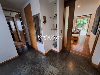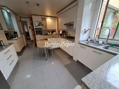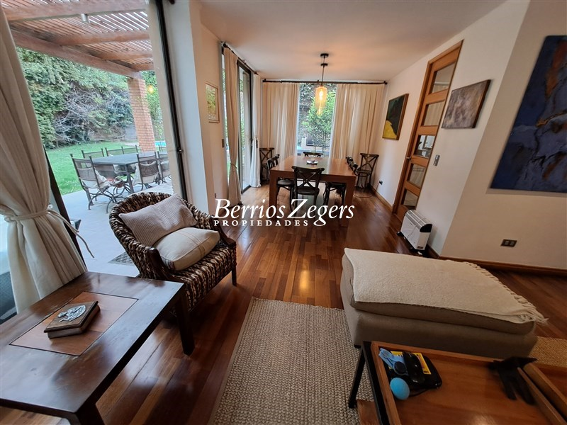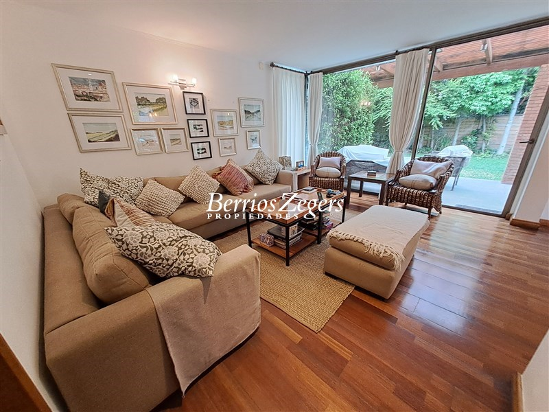 Amplio espacios, linda casa en condominio de sólo 4 casas!!Primer piso: Hall de acceso, living y comedor con salida a terraza y jardín, cocina amoblada con comedor de diario y cubiertas de granito, logia, baño de visitas, dormitorio y baño de servicio, dormitorio principal en suite, con walking closet, escritorio.Segundo Piso: Amplia sala de estar, 3 dormitorios, más escritorio o cuarto dormitorio, 2 baños completos con ventilación natural.Gran subterráneo o segunda sala de estar.Calefacción por losa radiante y aire acondicionado, pisos de madera en living comedor, flotante en dormitorios, pizarra en hall de acceso, ventanas termopanel en aluminio.Exteriores: terraza techada, jardín con riego automático, piscina con bomba de calor, parrilla.Estacionamiento para 3 autos. bajísimo gasto común.