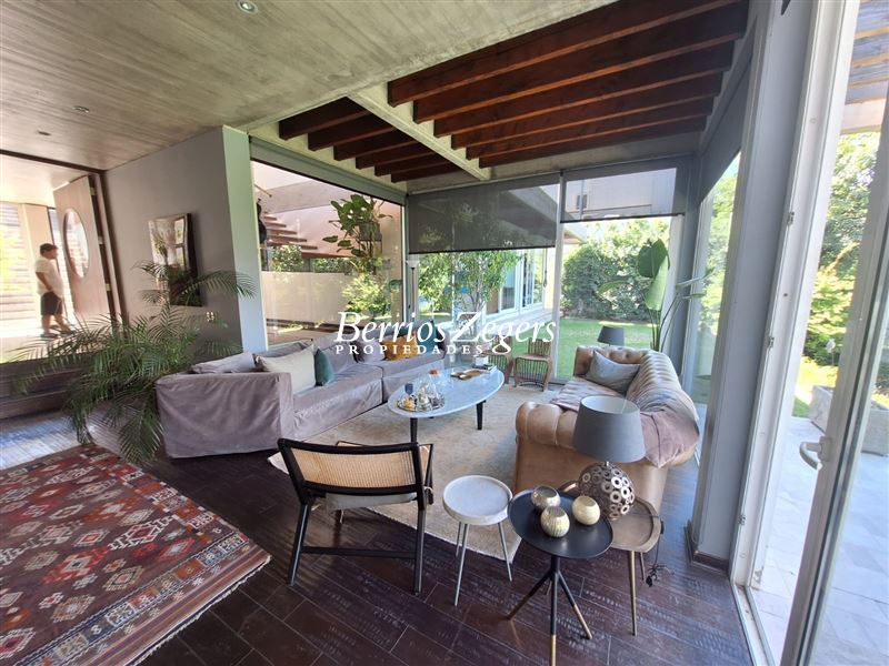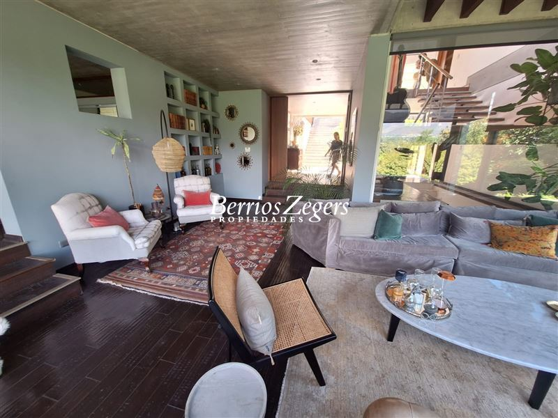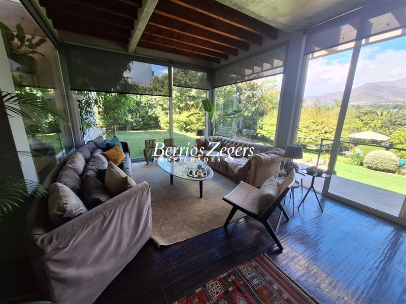 Espectacular casa estilo mediterráneo de amplios y variados espacios, vista panorámica a la Cordillera, maravilloso y gran jardín.1er piso: hall de entrada luminoso, con bajada a amplios recibos separados con linda vista al jardín, conectado living al quincho techado y equipado, cocina amoblada y equipada con isla y comedor de diario separado, remodelada recientemente, patio de servicio y servicios, logia techada.Baño de vista, 3 dormitorios todos con vista panorámica, 2 baños.2do piso: dormitorio principal de gran tamaño con w.closet y vista de ensueños a la cordillera y a la naturaleza.Basement: 3 salas, sala de estudios, sala de tv y distracción, sala de musica, con salida al jardín.Características generales: ventanas termopanel PVC, pisos de madera y porcelanato y piedra, calefacción central por losa y radiadores, terraza de unos 80 mtrs app para eventos familiares, grandes ventanales para tener luz en cada lugar de la casa, arboles frutales, maravilloso y tremendo jardín con mucha vegetación, piscina con deck, portón y riego automático, 2 entradas para autos, quincho espectacular techado y equipado.Buena conectividad, barrio tranquilo, si lo que buscas es que tu próximo hogar sea maravilloso en espacios, moderno, que tenga vista panorámica, buena orientación y tremendo jardín. 390/1200 mtrs app.SOLICTA TU VISITA HOY MISMO.