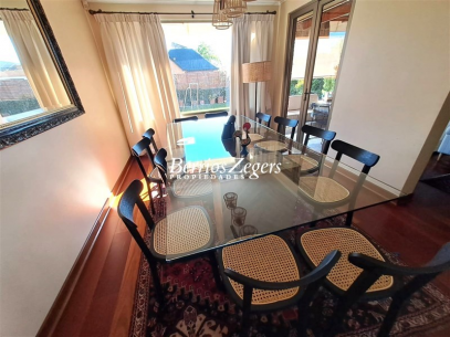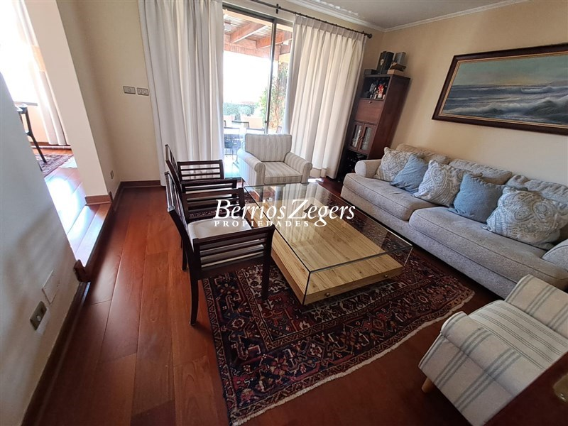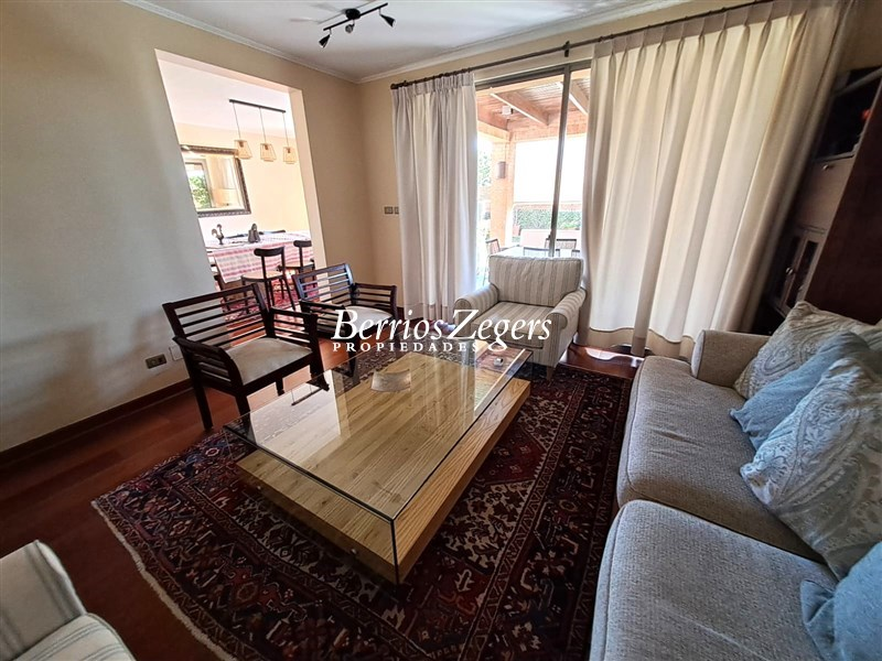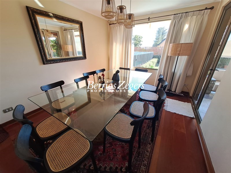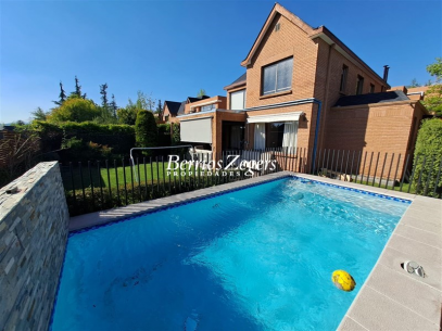 Linda casa estilo Ingles de 2 pisos en condominio en San Carlos de Apoquinto, orientacion Nor poniente, muy bien conservada, sector Colegio Juanita de Los Andes, seguridad las 24 hrs, parque de areas verde y estacionamientos de visitas en Condominio.Conectividad , seguridad y cercana a Street Center con todo tipo de comercio.1er piso: hall de entrada, recibos amplios separados con salida a terraza techada y vista al jardin con piscina y quincho.1 estar con un baño completo (que puede ser dormitorio), cocina amoblada y equipada con comedor de diario y lavadero incorporado, patio de servicios y servicios completos.2do piso: 4 dormitorios, principal amplio en suite con walk-in closet, 3 dormitorios y un baño.Caracteristicas Generales: pisos de maderas y ceramica en baños, cocina y terraza, calefaccion por radiador y losa, quincho, piscina con casacada y calefaccion por paneles solares, terraza techada, riego automitico y estacionamiento para 2 a 3 autos. G.Comunes $ 95.000, contribuciones $ 718.000. Metros de la propiedad, 198/350 mtrs a app.