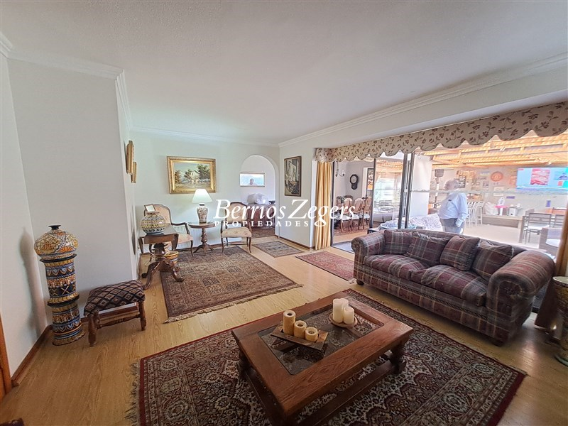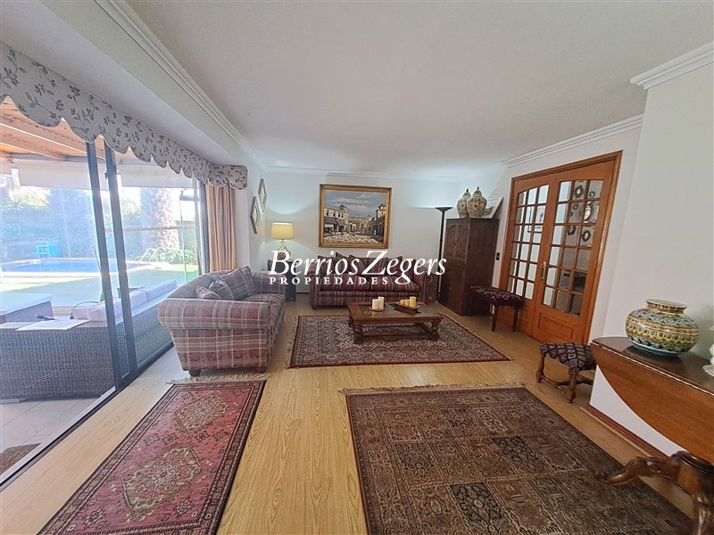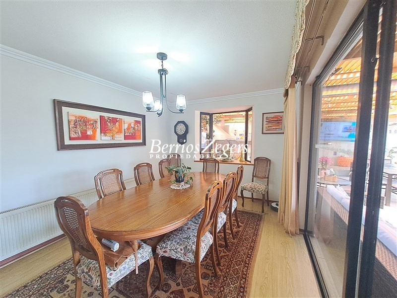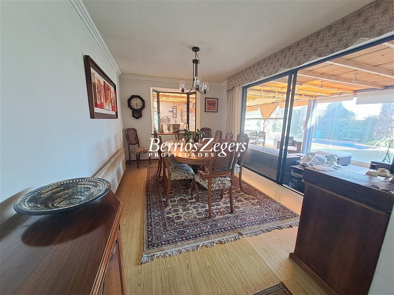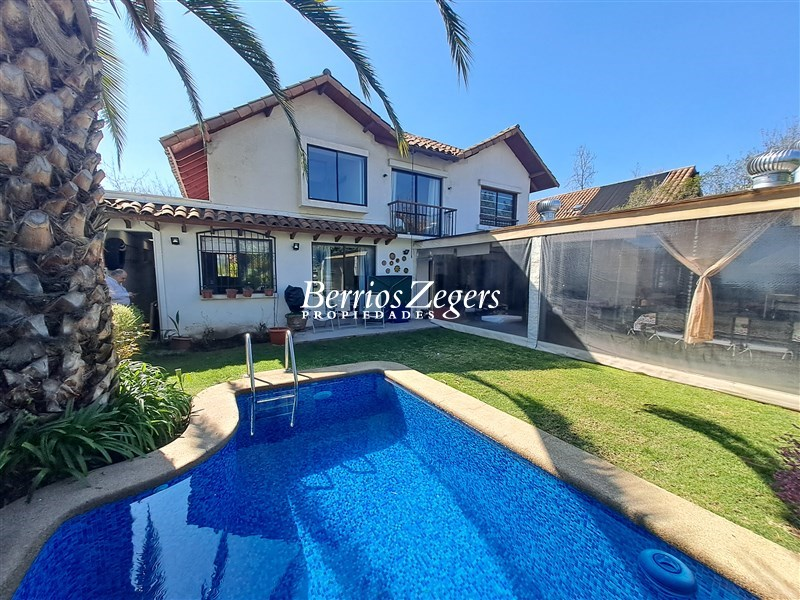 Casa estilo colonial en San Carlos de Apoquindo, buenos espacios, 5 dormitorios, conectividad, tranquilidad de barrio, cercano a plazas, colegios, universidades, clínicas, supermercados, centros comerciales del sector.Primer Piso: Hall de acceso, living y comedor separados con salida a la terraza y conectado al quincho, cocina remodelada, con comedor de diario y cubiertas de granito, escritorio, baño de visitas, dormitorio principal en suite, pieza y baño de servicio, lavadero y patio de servicio.Segundo Piso: Sala de estar, 4 dormitorios , 2 baños completos.Características Generales: calefacción central por radiadores, piscina con calefactor para temperar, jardín formado con riego automático, maravilloso quincho de 55 m2 aprox. equipado. con parrilla y mesón en obra, 2 estacionamientos, bodega, alarma, protección en la ventanas del 1er piso.AGENDA TU VISITA.