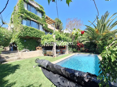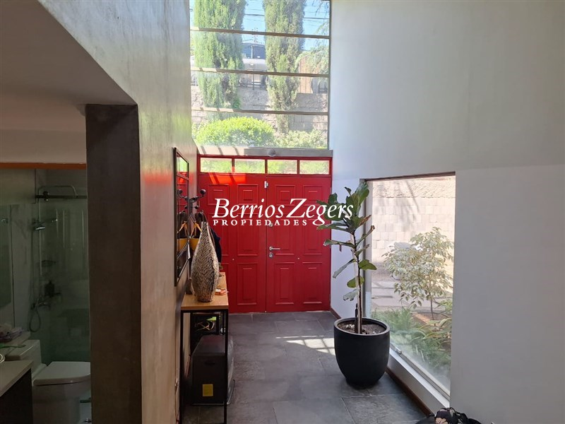 Casa estilo mediterraneo en desnivel con una espectacular vista urbana a la ciudad,sector oriente, remodelada, buenos espacios y mucha luz en ellos, sector residencial, buena conectividad.1er nivel: Hall de entrada doble altura, cocina amoblada y equipada con isla, lavadero techado, comedor, living en desnivel con salida a terraza y vista al jardin, dormitorio principal en suite con w.closet, otro dormitorio y baño.2do nivel: 3 dormitorios, 1 baño, sala de estar con maravillosa vista a Santiago, terraza como mirador.Caracteristicas Generales: pisos de madera, porcelanato y piedra pizarra, ventanas termopanel, terrazas techadas, bodega, 1 habitacion exterior doble con baño (usada como GYM, pero puede ser servicios,lindo jardin, riego y porton automatico, piscina de buen tamaño calefaccionada, calefaccion por aire acondicionado en los dormitorios, 2 estacionamientos.AGENDA TU VISITA .