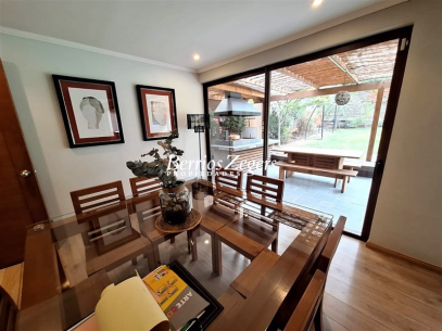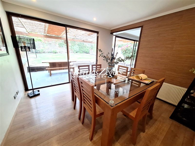 Casa de 2 pisos remodelada, de amplios y variados espacios, buen tereno, piscina y quincho, a cuadras del metro Los Dominicos, excelente ubicacion y buena conectividad. 170/ 420 mtrs app.1er Piso: hall de entrada, amplios recibos separados con salida a terraza y vista al jardin, sala de estar, baño de visita, gran cocina amoblada y equipada con comedor de diario full remodelada, lavadero y servicios.2do Piso: 4 dormitorios, principal en suite con walk-in close, 2 baños.Caracteristicas: calefaccion por radiador, piscina, ventanas termopanel, quincho en obra, terraza techada, porton automatico, 2 estacionamientos.AGENDA TU VISITA, propiedad recien bajo de precio.OPORTUNIDAD.