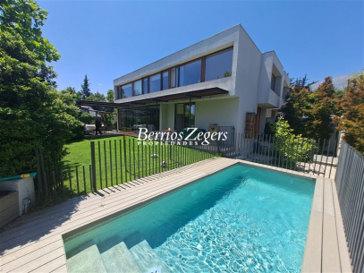 Moderna casa estilo mediterráneo, amplios espacios, muy iluminada con maravillosa vista, excelente ubicación, cercana a colegios, universidades, supermercados, plaza.Primer Piso: Hall de acceso, living y comedor separados con vistas y salida a terraza y jardín, sala de estar, cocina con cubiertas de granito, dormitorio y baño de servicio, lavadero, bodega.Segundo Piso: Sala de estar, dormitorio principal en suite, con walking closet, otros 3 dormitorios que comparten dos baños.Ventanas termopanel, calefacción por radiadores, piscina, jardín formado con riego automático y porton electrico, terraza techada, quincho, dos estacionamientos techados.AGENDA TU VISITA.