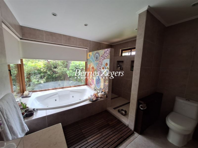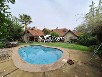 Casa estilo colonial en Los Dominicos Antiguo, sector residencial, amplios y variados ambientes, cómodos espacios, buena orientación, conectividad, cercano a Colegios, Universidades, comercio y Supermercados del sector.1er piso: hall de entrada, amplios recibos separados con doble altura y salida a la terraza y vista al jardín, cocina amoblada y equipada con comedor de diario de excelente tamaño, lavadero cerrado y patio de servicio, servicios. Baño de visita, escritorio, 1 dormitorio, 1 baño, dormitorio principal en suite de gran tamaño con walk in closet, sala de baño con jacuzzi, salida a terraza privada.2do piso: sala de estar amplia, 3 dormitorios y un baño.CARACTRISTICAS GENERALES: pisos de madera, flotante y cerámica, quincho, lindo y amplio jardín, piscina, arboles frutales, calefacción por losa, portón y riego automático, 2 a 3 estacionamientos.AGENDA TU VISITA excelente oportunidad.
