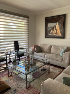 Bonita casa en CONDOMINIO en San Carlos de Apoquindo. Cercana a colegios, comercio, clínicas y universidades.Primer piso hall de entrada, baño de visita, living y comedor separados, cocina con comedor de diario, gran logia con muebles a medida, pieza y baño de servicio.Entre piso pieza principal en suite con linda vista, closet y baño con jacuzzi .Segundo piso 2 piezas, 2 baños, sala de estar con escritorio a medida, terraza con gran vista..Subterráneo amplio y cómodo family room, baño completo, bodega.Pintoresco jardín con riego automático, gran terraza techada con quincho, cortinas para cierre de terraza, ventiladores de techo, piscina.Calefacción por radiadores, aire acondicionado en piezas, ventanas con Termopanel y persianas metálicas de exterior eléctricas.Condominio con seguridad 24/7 con plaza para niñosGastos comunes $ 320.000Contribuciones $ 850.000Año de construcción: 2015
