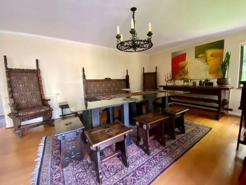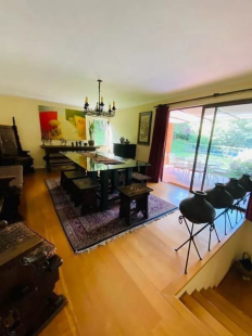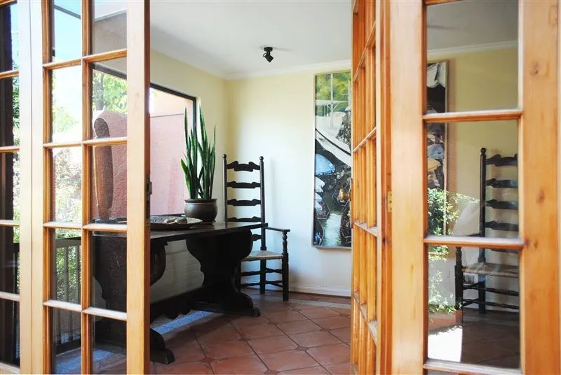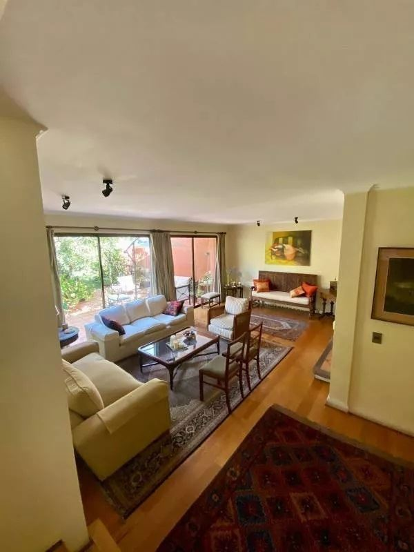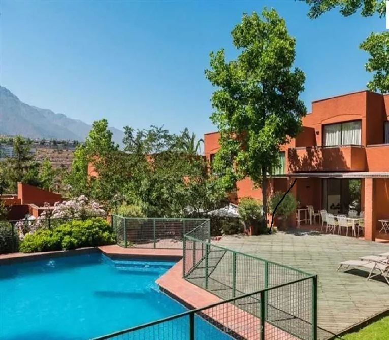 409/1050 M2 Aproximados excelente casa de 3 medios pisos. Pequeño condominio de solo 2 casas. Hall muy luminoso, 6 dormitorios, 6 baños, 2 salas de estar, subterráneo, sala de estar y bodega. Living y comedor con salida a terrazas. Cocina con comedor de diario, logia, servicios completos, patio de servicio. Dormitorio principal en suite con hidromasaje y ducha independiente, w- closet. Segundo dormitorio en suite con w-closet, terraza con acceso independiente a jardín.3 Dormitorios todos con balcón independiente, 2 baños .Baño de visitas. Piscina, cancha de basquetbol o multiuso. Ventanas termopanel, calefacción por radiadores, central de aspiración .Estacionamiento para 6 vehículos .Excelente ubicación. SON 2 CASAS EN UF 28.000