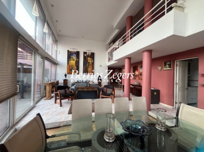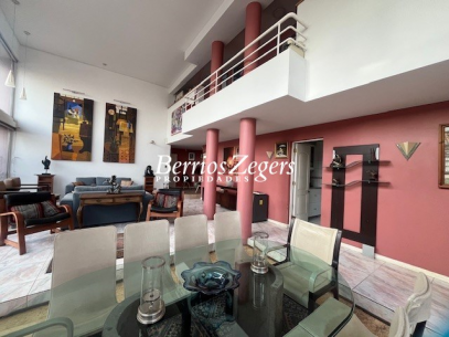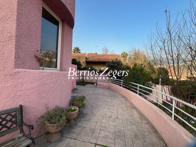 Casa de 2 pisos 287/825 m2 aproximados (entregado por dueña) situada en excelente sector con hermosa vista de Stgo. Cuenta con 5 dormitorios ( todos en suite) mas baño de visitas, Servicios completos (baño y dormitorio) . Hall de entrada, escritorio, dormitorio principal en suite con jacuzzi y. w-closet, mas 4 dormitorios con sus respectivos baños . Amplio living comedor , cocina con comedor de diario, logia, Sala estar o dormitorio adicional, baño de visitas, dependencias de servicio, gimnasio y bodega. En el exterior encontramos piscina, terraza y quincho mas 2 baños. En conclusión 5 dormitorios, 8 baños mas servicios. Toda la casa con termo panel oscilobatientes. Estacionamientos techado para 3 autos. Excelente ubicación.