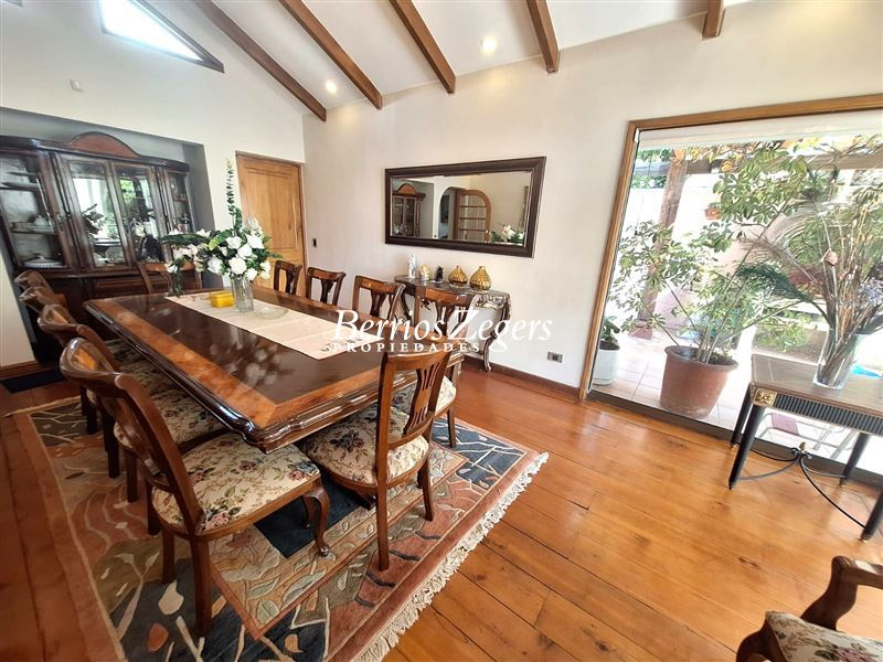 Se vende casa en Quinchamalí, comuna de Las Condes, en la tranquila zona . Esta propiedad cuenta con 4 dormitorios y 5 baños distribuidos en 356 m2 construidos, en un terreno de 1050 m2. Con un total de 396 m2 con gran terraza y una hermosa vista hacia el jardín , esta casa tipo chalet colonial ofrece amplitud y comodidad luminosidad para toda la familia.Descripción: PRIMER PISO-Amplio hall de entrada con piso de mármol-Baño de visita-Living comedor con salida a la gran terraza con vista al jardín-Cocina comedor diario con isla -Logia- Habitación de servicio -Habitación Principal en suite con doble walking closet -Sala de estar o escritorio - Dos dormitorios mas baño completoSEGUNDO PISO:-Dormitorio -Baño -Walking Closet - Gran sala de estar -Piscina jardín parquizado y formado con grandes arboles Esta propiedad es ideal para quienes buscan una vivienda espaciosa y confortable en una de las zonas más exclusivas de Las Condes. No pierdas la oportunidad de visitar esta casa única y descubrir todo lo que tiene para ofrecer. Contáctanos para más información y agendar una visita.