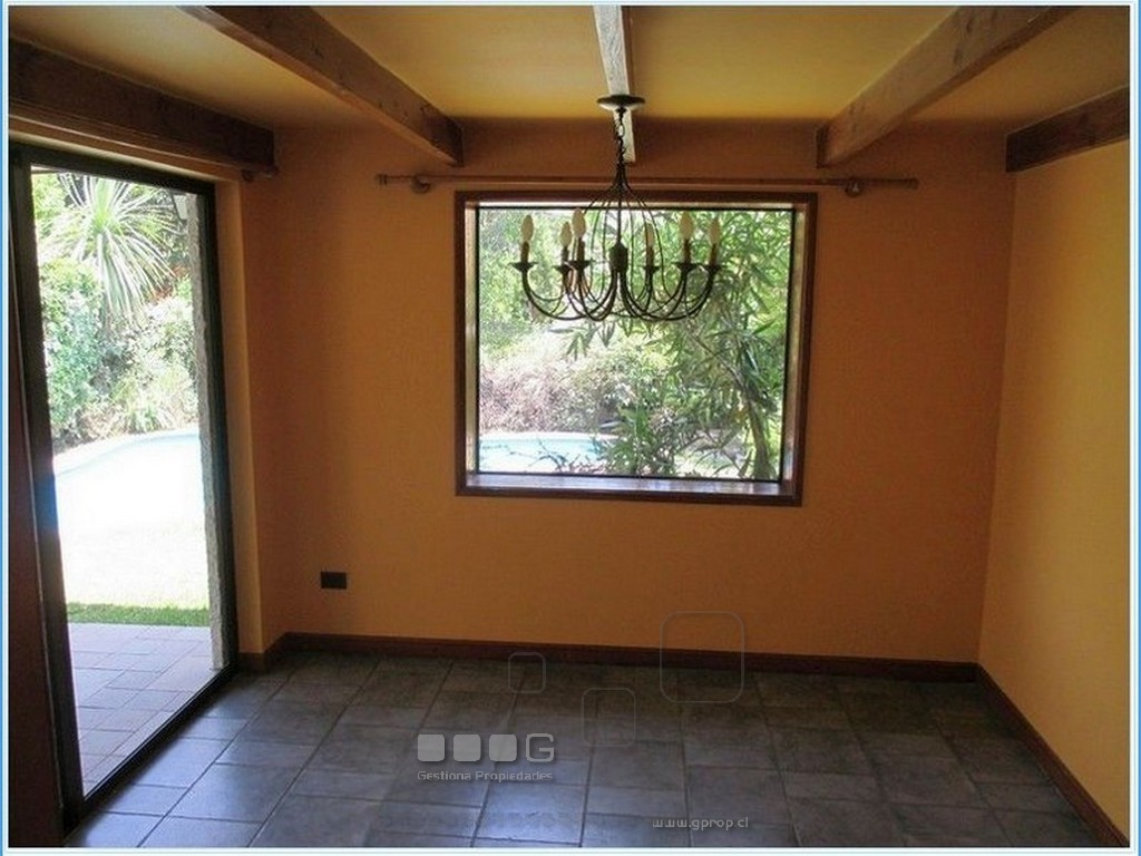 Acogedor bungalow ubicado en lindo barrio residencial. Hall. Recibos separados. 4 dormitorios, principal suite c/ jacuzzi. 3 baños. Gran cocina, dependencias, patio servicio. Sauna, piscina, quincho, terraza. Pino Oregón. Estacionamiento techado 2 autos.