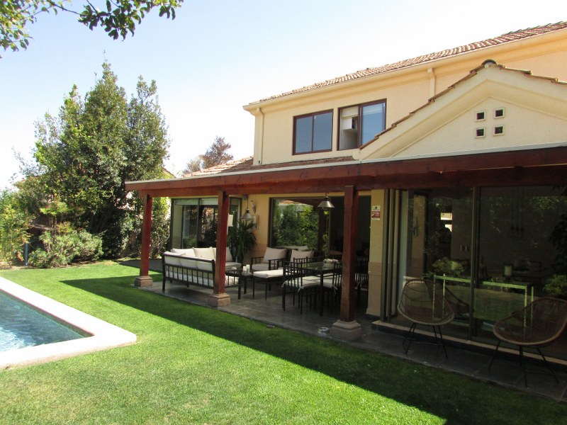 Información general:216/429 mts2 aprox. Impecable casa en condominio de 5 dormitorios (p/p en suite), 3 baños, sala de estar.Hall de entrada, living y comedor con salida a terraza techada, baño de visitas, cocina ampliada con comedor de diario, muebles de muro a muro, logia techada grande con bodega, 2 dormitorios, principal en suite con ventanales amplios, muy luminoso.Segundo piso; 3 dormitorios, 2 baños mas sala de estar amplia con 2 bodegas interiores.Lindo Jardín con piscina y quincho. Estacionamiento para 3 autos.Cercana a colegios, clínicas, universidades, con excelente accesos.Contactos;