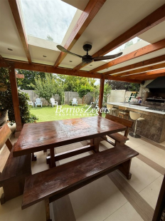 Hermosa casa en condominio, con excelentes accesos, cerca de colegios, servicios, supermercados.Hall de acceso, living y comedor con salida a las terrazas, jardín, quincho, piscina4 dormitorios, 2 en suite, 4 baños, salita, escritorio (opcional 5to dormitorio). Ppal remodelado con amplio walking in closet. Cocina equipada, comedor de diario, amplia loggia , servicios completos.Dos estacionamientos.Gastos Comunes: $ 100.000 APROX