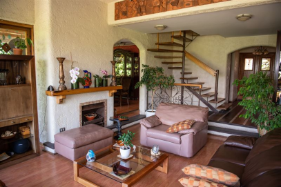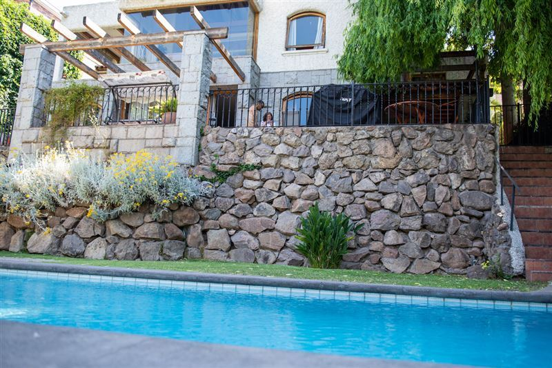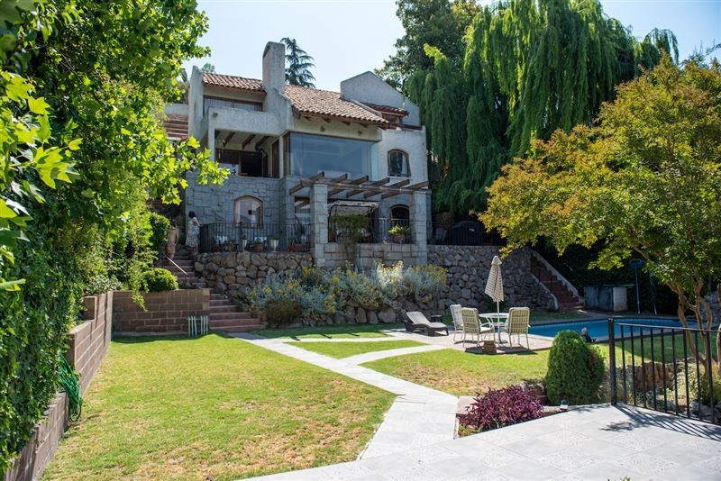 314,98/760 mts linda casa estilo chileno casa borde cancha de golf imponente vista oriente hall de entada living y comedor separados en desnive 7 dormitorios 2 en suite cocina amoblada y equipada con cubierta de granitocon comedor de diario dependencias completas logiabaño de visaitas sala de estar sala de multiuso piscina gran bodega con SALIDA A CANCHA DE GOLF.