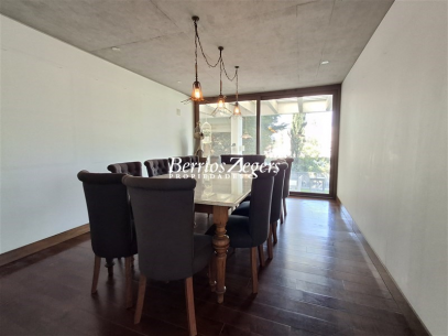 Linda y moderna casa mediterránea, sector Golf de Manquehue, 400/ 834 m2 , cercana a colegios, supermercados, mall, orientada con una vista despejada y jardines formados. La casa cuenta con 2 pisos más subterraneo: en el primer piso tiene: Hall de entrada, amplio living comedor separados con salida a gran terraza con quincho en obra, baño de visitas, gran y espacioso dormitorio ppal en suite con doble w-closet, y sala de baño, amplia cocina amoblada con comedor de diario e isla central, encimera, horno electrico y microondas, tiene además despensa, logia y servicios.En el 2do. piso, gran sala de estar con salida a terraza, 3 dormitorios en suite, mas salita de escritorio; en subterráneo tiene bodega, baño, y espacio para Gym y sala de estar, con salida al jardín. La cuenta con estacionamiento techado para 3 autos, termopanel, calefaccion por losa en 1er. piso y 2do. piso y subterráneo con calefacción con radiadores, piscina con calefactor y lindos jardines, en uno de los mejores sectores