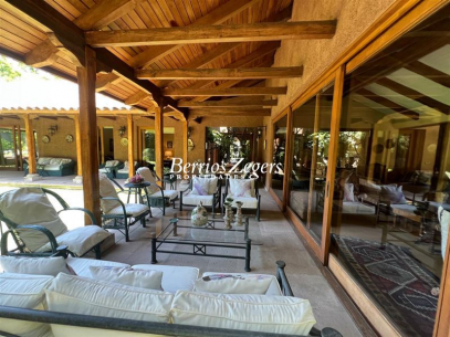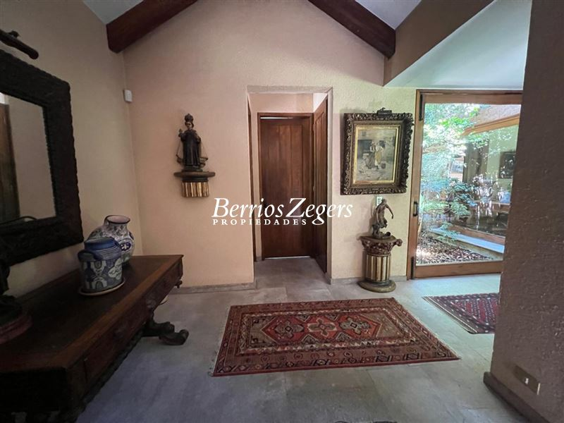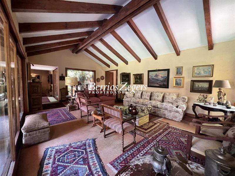 343/1.550 m2 aprox. Preciosa casa de un piso, con amplios espacios y muy bien mantenida, en calle tranquila sin salida, con muy buena conectividad y cercana a colegios.Hall de entrada grande con 2 lindos patios de luz; baño de visita. Gran living con salida a terraza; Comedor con ventanal termopanel y piedra pelequén con salida a otra terraza con quincho; jardín formado con riego automático; varias terrazas; piscina; quincho; toda la casa está rodeada de jardines y cuenta con lindos rincones varios.Cocina grande con cubierta de granito, con comedor de diario; despensa; logia y patio de servicio; dormitorio de servicio completo.Dormitorio principal en suite con walk-in closet; 2 salas de estar ó escritorio ó 5° dormitorio.3 dormitorios que comparten 2 baños; con amplios closets.calefacción central por suelo a petróleo; dormitorios alfombrados; todos los baños son con luz natural, incluidos de visita y servicio.amplios estacionamientos con portón automático.