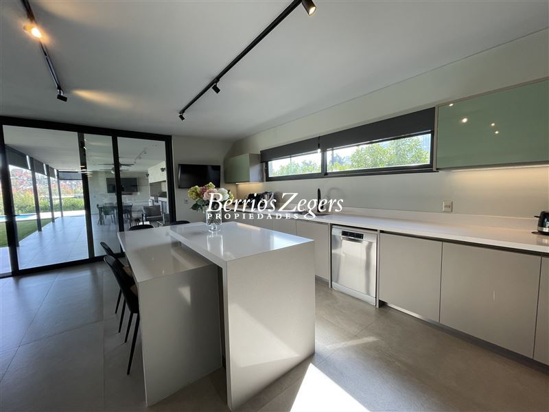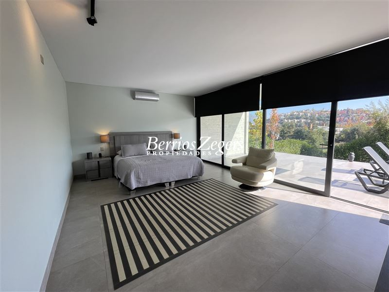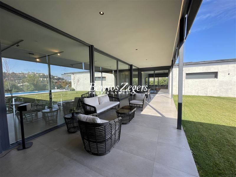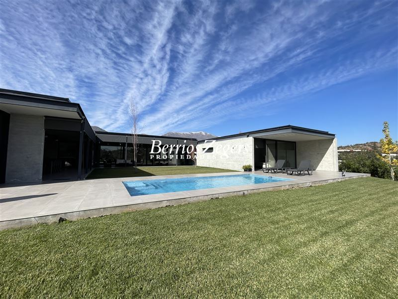 Estupenda casa nueva, con un amplio terreno de 1750 m2 y 277 m2 construidos mas 200 m2 de terrazas, que cuenta con 2 dormitorios y 4 baños , mas sala de estar (podria ser un tercer dormitorio) y servicios..Arquitectura moderna, y espacios integrados para aquellos que disfrutan de espacios abiertos y luminosos. Además, su orientación Sur-Oriente-Poniente te permitirá disfrutar de luz natural durante todo el día. Gran jardín formado con hermosa piscina , Quincho full equipado, vista panorámica hacia el valle y al campo de golf.Valle Escondido es un condominio exclusivo, y con gran seguridad, donde podrás disfrutar de la tranquilidad y la privacidad que buscas. Además, cuenta con calefacción por losa radiante.