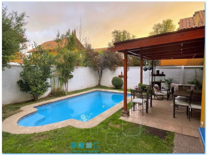 Hermoso chalet en magnífico condominio privado. Recibos luminosos, piso flotante, calefacción por radiadores. Gran cocina con logia. 4 dormitorios, principal suite. 3 baños. Patio. Terraza techada. Piscina. 3 estacionamientos. Estacionamiento visitas