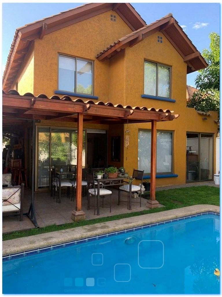Hermoso chalet en magnífico condominio privado. Recibos luminosos, piso flotante, calefacción por radiadores. Gran cocina con logia. 4 dormitorios, principal suite. 3 baños. Patio. Terraza techada. Piscina. 3 estacionamientos. Estacionamientos visitas