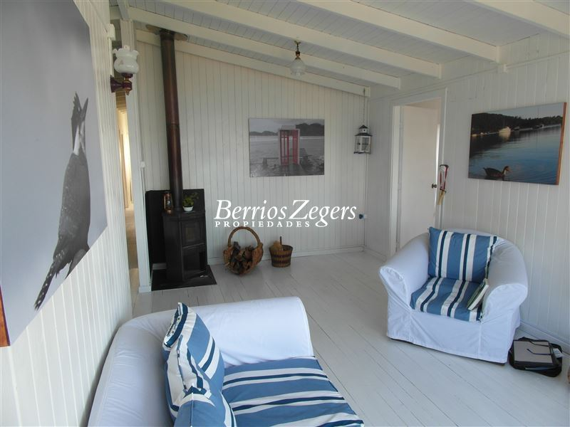 Terreno de 5200m2 y 35m frente a la costanera/playa Puchilco, Isla Lemuy, en una bahía muy protegida. Cuenta con fondeo para embarcación frente a la casa. Canal de tránsito marítimo hacia Castro, Chonchi, marina Quinched y futura marina en Rilán por lo que por él pasan yates y cruceros. Rampa pública para embarcaciones a unos 200m de la propiedad. Espectacular vista a las islas Quehui y Chelín, península Detif y Cordillera de los Andes destacando los volcanes Corcovado y Michimahuida entre otros. Cabaña totalmente restaurada con 5 dormitorios, un baño, terraza, cocina comedor amplia, alacena, rodeada de prado y flores. Sistema de agua caliente en baño y cocina por gas licuado. Estufa de doble cámara a leña. Leñera-bodega botes. Luz eléctrica, señal de telefonía
