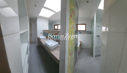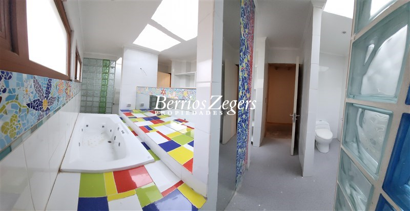 Casa nueva, estupenda, 460/ 5.000 m2 aprox. Condominio Hacienda Lomas del TranqueGran hall de acceso, recibos amplios, 6 dormitorios más una sala de estar en el ala privada de los dormitorios.La habitación principal tiene un baño privado y esa ala privada tiene un baño doble (2 lavamanos, 2 wc, 2 duchas, más tina de hidromasaje) y otro baño más simple completo.El ala pública tiene estar comedor más una sala que puede ser una biblioteca u oficina. Tiene un baño de visitas que no está terminado.
