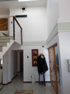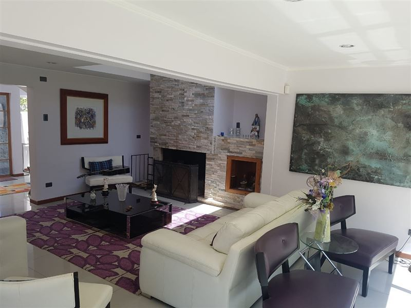Hermosa casa estilo mediterránea con amplios espacios luminosos, emplazada en un terreno plano de 930 mts2 en exclusivo barrio.-Primer Piso: Hall de doble altura, living con chimenea en funcionamiento y comedor separados por corta vista de pilares con salida a la terraza. Cocina americana con sala de estar. Cubiertas de Silestone. Comedor de diario incorporado como isla. Sala de estar anexa con salida al patio. Porcelanato en los pisos. Pieza de servicio o escritorio con baño completo y closet. Baño de visitas. 3 dormitorios, uno de ellos en Suite y Walk in Closet. Ventanas de termopanel en toda la casa.-Segundo Piso: Hall de distribución conectado con living a primer piso. Closet de servicio. Pieza en Suite con aire acondicionado. Puerta de pieza principal doble, abatibles. Terraza con escalera caracol en fierro forjado con acceso al jardín. Amplia pieza matrimonial, orientación Norte, gran Walk in Closet con gran sala de baño. Conexión para Jacuzzi, ducha a pie, calentador de toallas eléctrico programable.-Anexos: Alarma, cámaras de seguridad con sistema de grabado monitoreable desde el