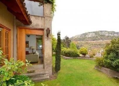 Estupenda casa Lo Curro, hermosa vista a Santiago 510/ 1000 m2 aproxAccesos de doble altura, amplios espacios, recibos separados con altura. Estar familiar, 5 dormitorios, 4 baños.Principal en suite con salida a jardín, terrazas, quincho, piscina. Amplia cocina, servicios completos, hermosa fuente de agua.Garage cerrado para 4 autos, espacio para taller, bodega. Ascensor que conecta desde garage a 2do nivel Calefacción central por radiadores con cuatro zonasSeguridad 24/7, proxima a caseta de guardia.