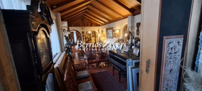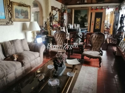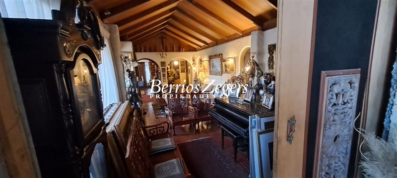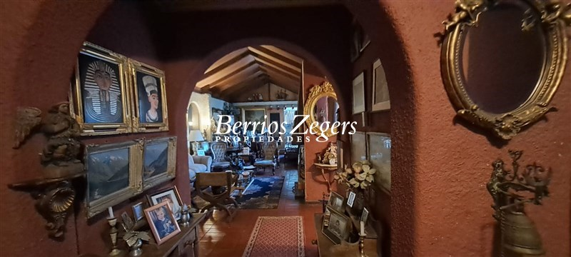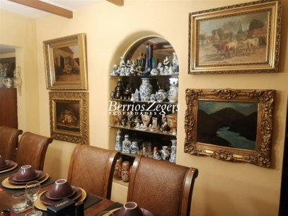 255 metros/ 5000 metros aproximados, linda casa estilo colonial en Lo Curro, hall de entrada, living- comedor separados, sala de estar, mini comedor, cocina equipada, patio de servicio, logia, pieza de servicio, bodega, 5 dormitorios, 4 baños, zócalo, mansarda (donde está el comedor). Jardín en desnivel, aterrazado, amplia piscina, áeras verdes, espacio para poner una cancha de tenis. Estacionamiento para 10 autos.