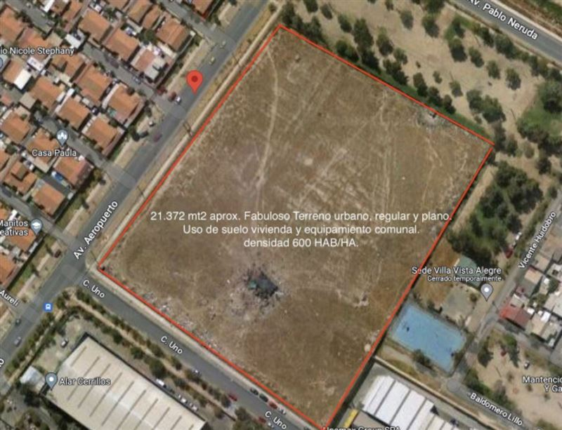 21.372 mts2. Fabuloso Terreno urbano, regular y plano.Uso de suelo: Salud y/o Educación.UF6.33/m21 rolse vende paño completo
